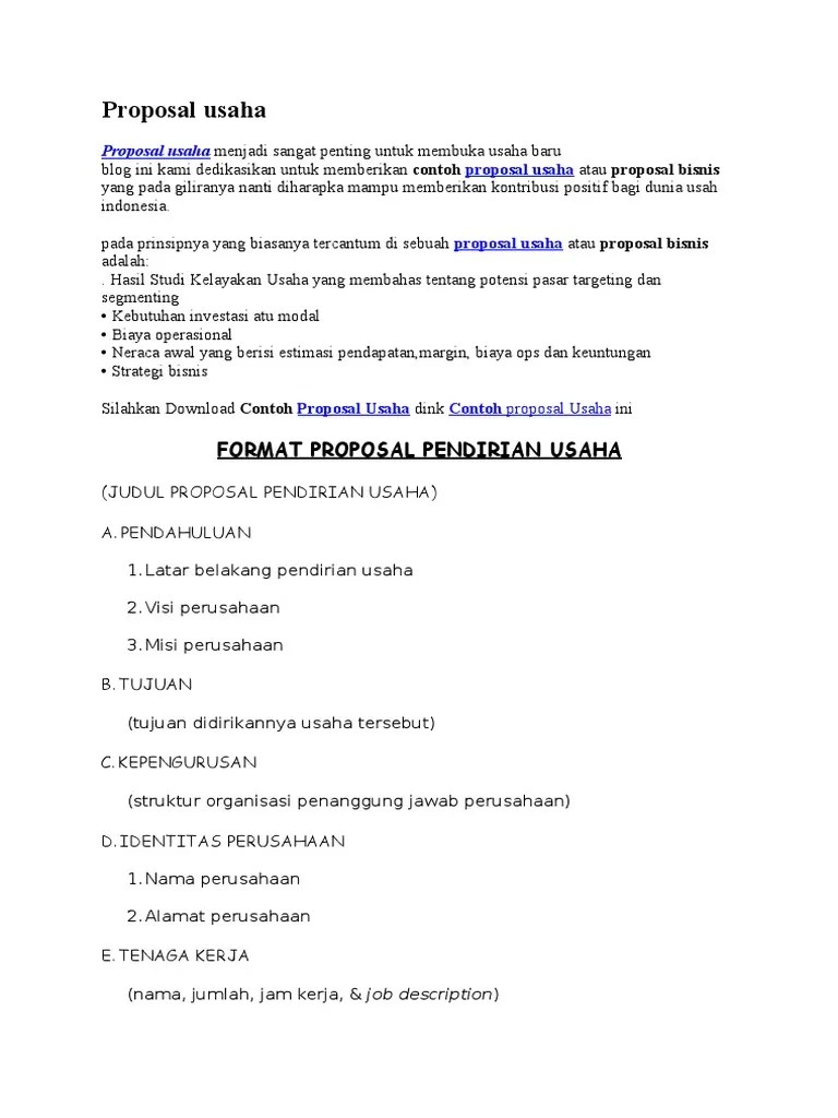 Penulis berharap, semoga proposal ini dapat menambah pengetahuan dan pengalaman bagi para. Proposal ini membahas tentang bagaimana cara untuk membuka suatu bidang usaha, menentukan lokasi sampai dari modal usaha yang akan di . View file, proposal usaha bisnis katering latar belakang (contoh proposal usaha penawaran katering) atas dasar … Modal usaha modal dasar usaha dan telah disetorkan sebesar rp 39.875.000 (tiga puluh . Diperlukan adanya komitmen dan perjanjian yang .